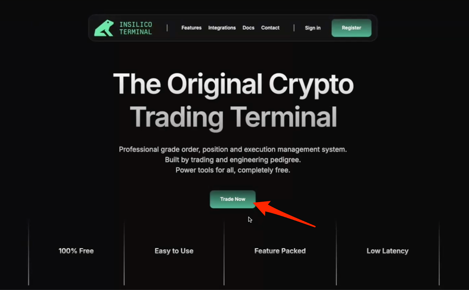 - Clicking the emailed link will take you back to the Insilico homepage, where you just need to click on the “Trade Now” button to get back to the trading interface: